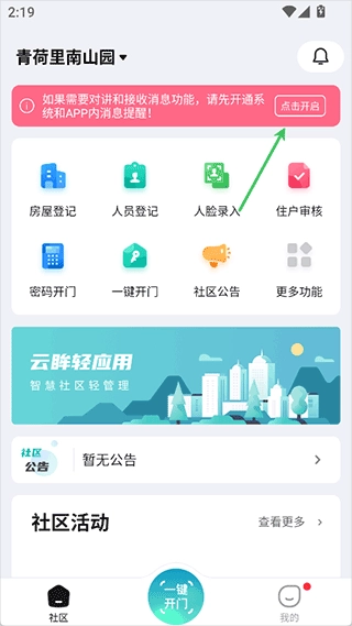 5、至此,便可使用app的全部功能。例如,若要开通app的对讲功能,开启手机相关权限即可使用。