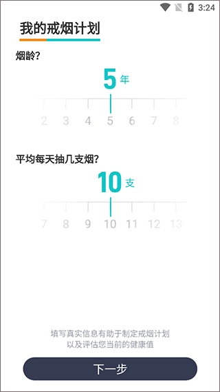 1、根据自身的烟龄、抽烟数量等信息填写数据