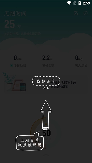 4、上滑可查看在戒烟期间身体的健康状态
