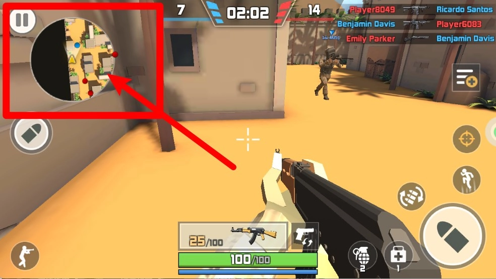 2.小地图功能:在战斗画面左上角可以清晰查看小地图,红点显示敌人位置,帮助玩家快速掌握战场局势。