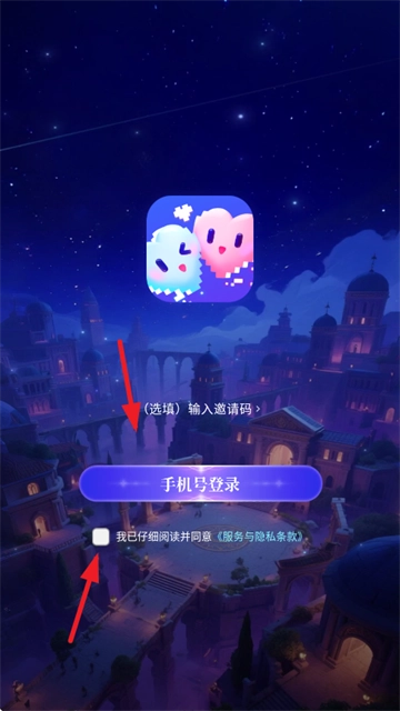 3. 点击“手机号登录”选项,并勾选“服务与隐私政策”。