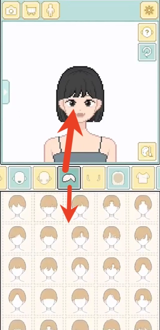 2、通过分类菜单挑选发型、服装与装饰元素,自定义颜色与大小直至满意。
