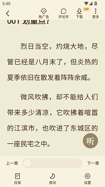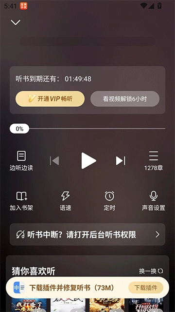 1. 在阅读页面点击“听”,即可进入听书模式。