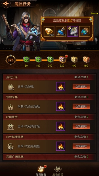 2. 在“魔物狩猎”玩法里,累计使用特定次数的EX技,即可达成相应的每日/活跃度目标。而在“秘境首领”玩法中,累计获取一定次数的首领归属同样能够达成相关目标。