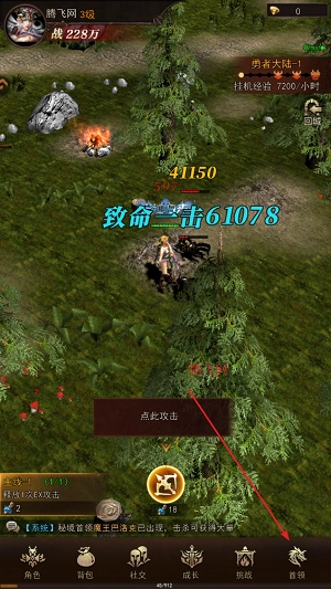1、进入新月大陆手游后,我们点击首领;