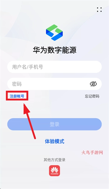 先下载并安装华为数字能源app,安装完成后打开该应用。待进入登录界面,点击“注册账号”选项。