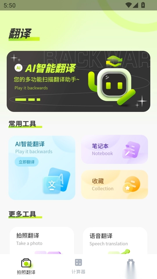 软件带来非常实用的翻译器工具,智能翻译一键使用;