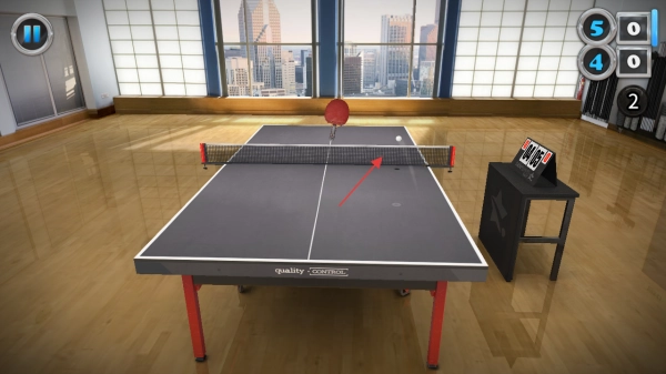 3、紧盯乒乓球轨迹当球靠近球网时精准滑动屏幕击球争取让球落在对方难接区域努力提升比分获胜。
