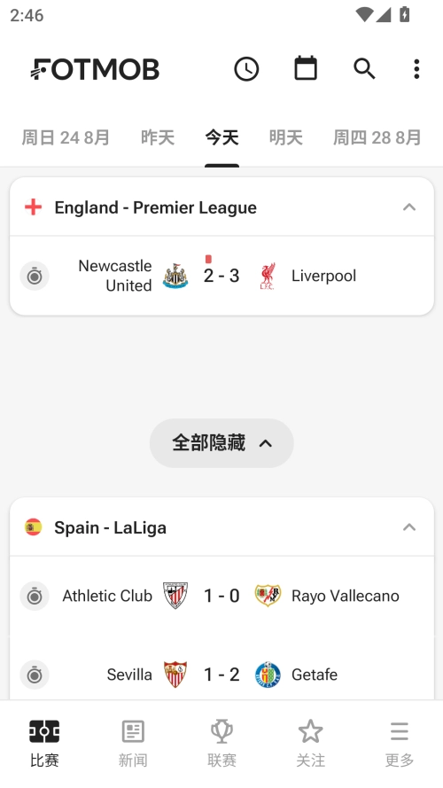 1、在本站下载FotMob,这款软件会呈现每日实时的足球赛事比分,以及各类实时体育新闻。不少热爱足球的小伙伴都在使用它。