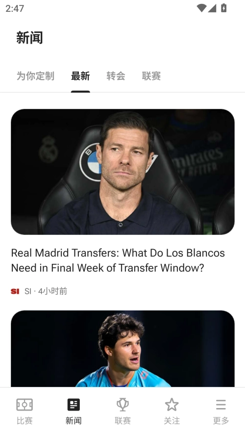 5、当所有准备工作完成后,软件会自动推送你所关注的联赛、球队以及球员的比赛信息和资讯。