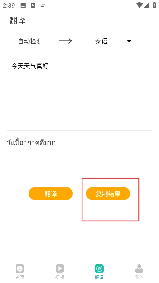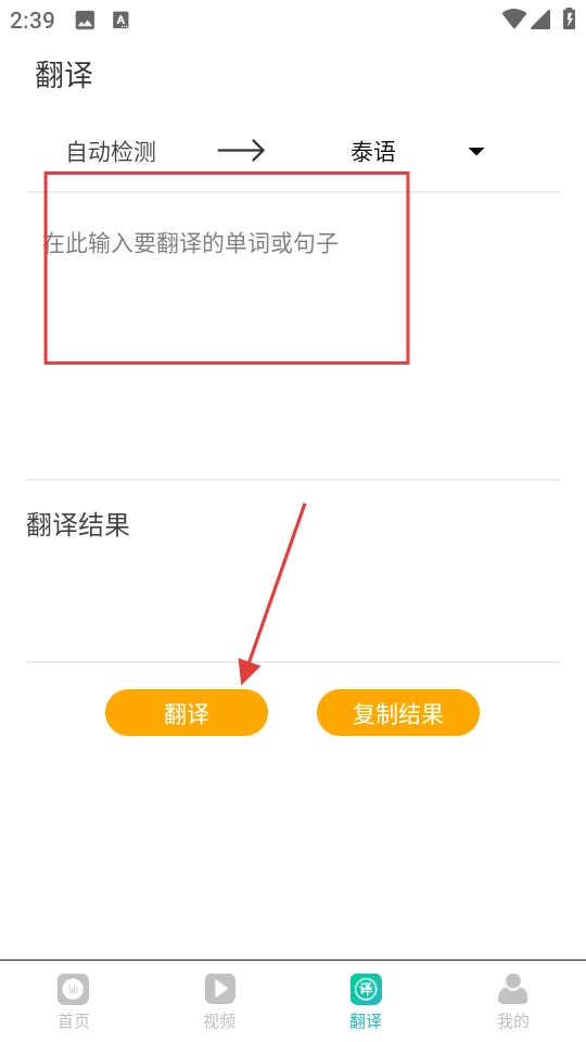 2、在输入框填入内容,点击翻译获取泰语译文。