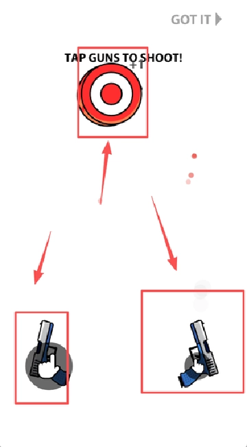 1、游戏操作简单直观,通过点击屏幕左右两侧对应的按钮即可控制两把枪分别开火或同时射击。