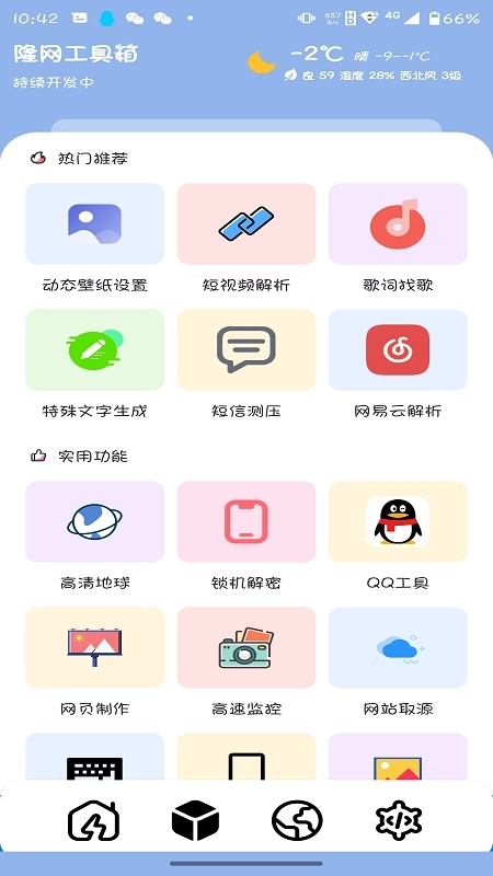 1、下载安装隆网软件库app,进入主页可以看到众多的小工具