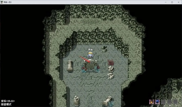 注意,为了方便看清我所在位置,我特意往上走了一格,要开启机关,应该紧贴石碑背面按互动
