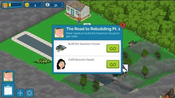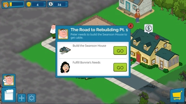 《恶搞之家:寻求之物》是一款依托《恶搞之家》IP打造的休闲游戏。游戏里,玩家将扮演格里芬一家的当家彼得·格里芬。在与巨型鸡进行又一场史诗级战斗后,彼得·格里芬不慎摧毁了圆蛤镇。此时,玩家得一边着手重建小镇,一边收集《恶搞之家》中的经典角色,共同守护圆蛤镇。这款游戏融合了模拟经营与放置挂机的玩法,玩家能够建造《恶搞之家》里的知名建筑,像FG四人组的住宅、小镇的酒吧、超市等。为了打败巨型鸡,玩家还需学习战斗技巧,全力保卫圆蛤镇。