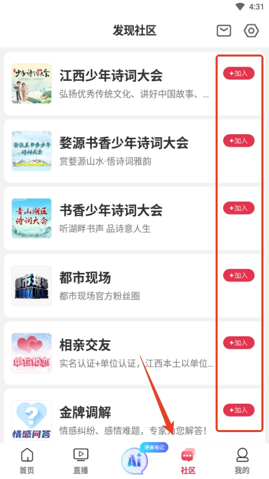 2、你既能够直接挑选自己感兴趣的社区加入,也能点击该社区,先查看社区内容,之后再点击右上角的【加入】按钮。