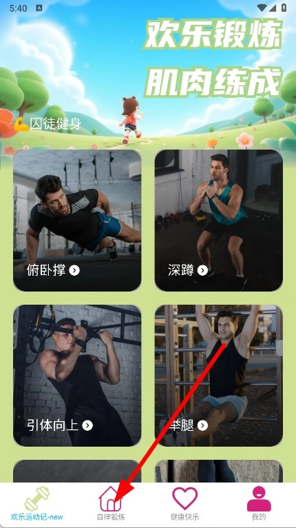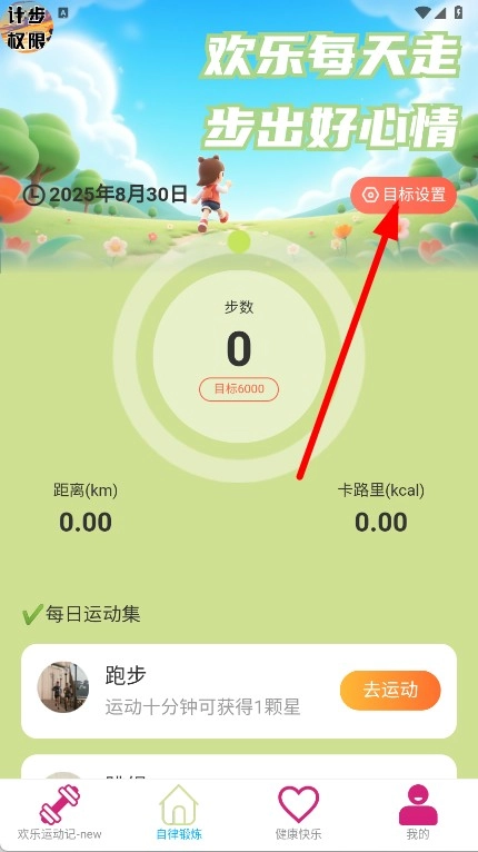 1. 打开“欢乐每天走”,点击底部导航栏中的“自律锻炼”,从而进入运动记录页面。