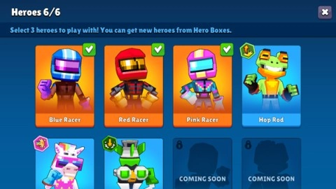 1. 从诸多熟悉的角色里组建一支赛车英雄小队,每个角色皆具备独特技能!
