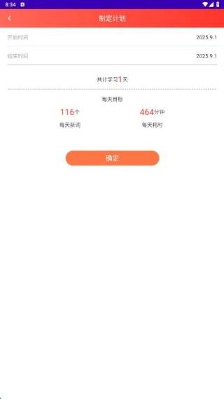 2、进入单词打卡页面,展示了你的单词学习计划。