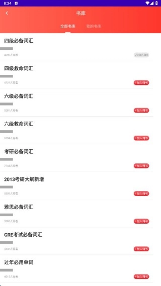 4、平台还支持自定义词汇内容,直接点击还书就可以获取不同单词背诵素材。
