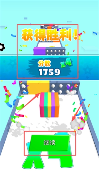 1. 其核心玩法为:收集颜色相同的方块并进行堆叠,当相同颜色的方块数量达到三个及以上时,便会自动触发消除效果。