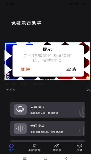 3、后台录音:后台录音功能强大,息屏也能持续录,不影响手机其他操作。