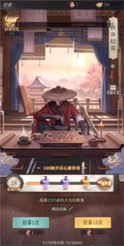 1、侠客获取:游戏里,侠客获取难度较高。玩家可通过剧情模式推图冒险,快速提升自身战力,进而获取不少侠客。此外,玩家还能在游戏中招募侠客,借此获得大天位侠客,助力大幅提升战力。