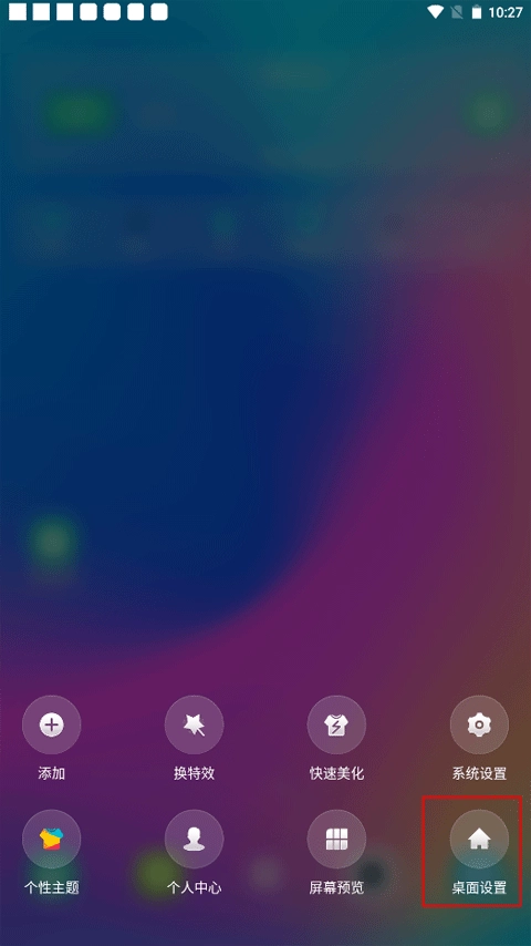 1、长按桌面空白处,下方会弹出几个功能选项,点击 “桌面设置”;