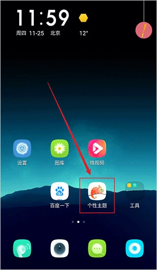 1、在软件主界面,点击桌面上的 “个性主题”;
