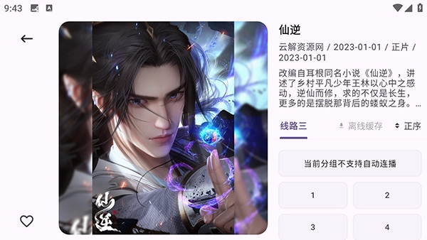 8. 进入影视播放页面,该页面支持点击播放、选集、缓存以及收藏等操作。