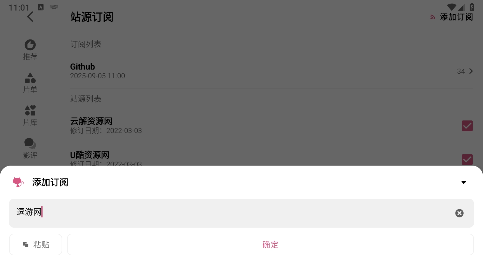 7.点击站源订阅按钮,还支持自定义添加本地的影视源