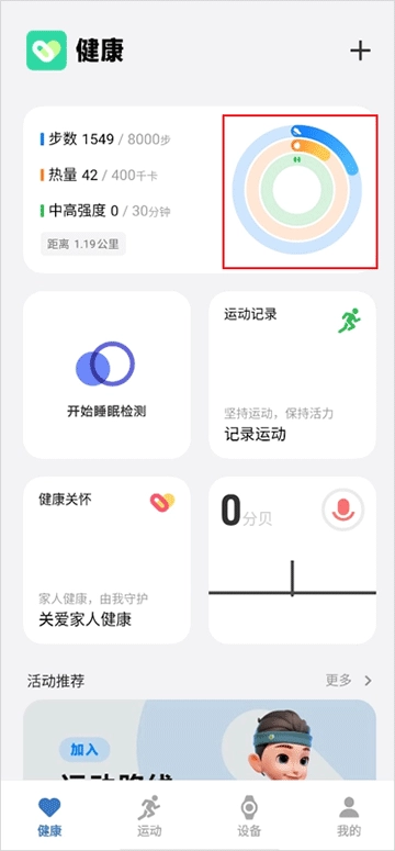 1、玩转每日活动圆环,设立活动目标,达成目标后可圆满闭环。