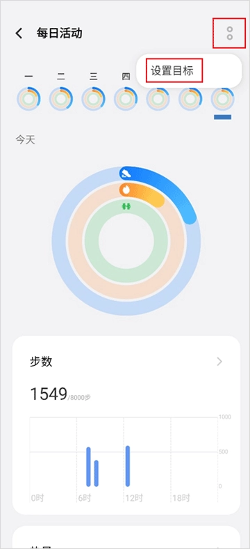 2、接着点击右上角的两个竖点图标,再点击“设置目标”