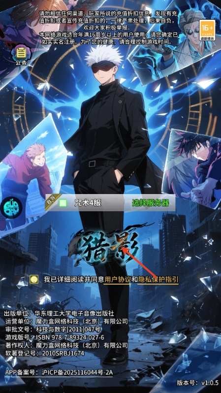 1. 在本站完成猎影的安装后,运行游戏,选择区服并进入。
