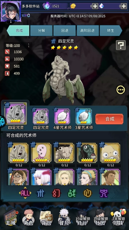 1、汇聚了咒、战等多种不同类型的咒术师,供玩家进行培养,进而组建出独具特色的对决阵容。