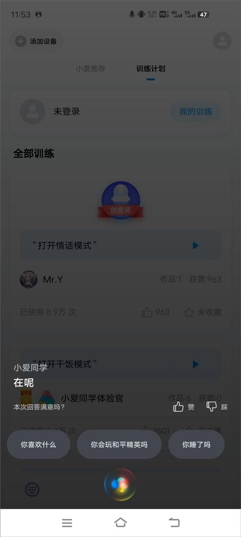 3、点击上方训练计划,用户可训练小爱同学;