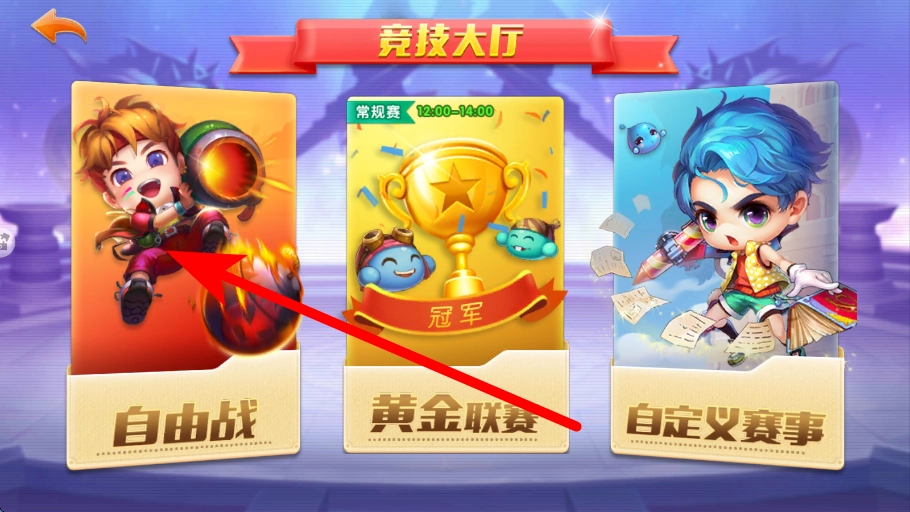 3、挑选赛事要在竞技大厅,从自由战、黄金联赛等不同赛事中,挑选想要参与的赛事,之后进入该赛事的对战环节。