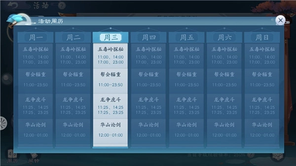 随着角色实力逐步增强,玩家能够更自由地参与各类日常活动。目前,《新笑傲江湖》推出了众多日常活动,像一日游、寻龙探宝、江湖话本、门派修行、影宗悬赏、五霸岗除魔、门派授业等等。不仅如此,游戏在一周内的不同时段还会开启特殊限时活动,例如五毒岭探秘、龙争虎斗、华山论剑。这些活动让玩家在探索笑傲大世界的过程中,能够获取提升战力所需的装备、物资、侠客等资源。
