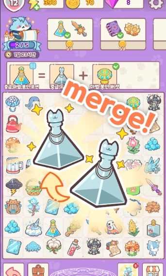 《猫咪合成之王》正式版,这是一款以可爱猫咪合成玩法为主的休闲闯关游戏。合成过程中,会呈现完整的魔法变化动画,让每一个合成瞬间都更具观赏价值。玩家能够通过合成魔法食材,解锁各式各样的魔法食谱,像发光汤、悬浮料理等等。而且每一道食谱都关联着独特的剧情。此外,玩家还可以合并并制作魔法物品,例如魔法长袍、帽子以及各类炼金术工具等。