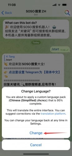 \\n 2、在搜索框中输入“@sosozhbot”,点击搜索出来的结果。\\n