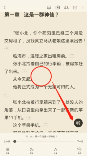 3、接着来看第二种,在米读小说上打开小说内容页,然后任意点击位置。