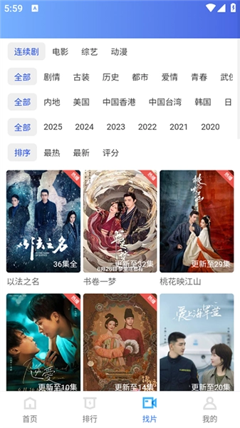 3、通过“找片”功能,可按类型、年份等筛选,或直接搜索关键词查找想看的影视内容。