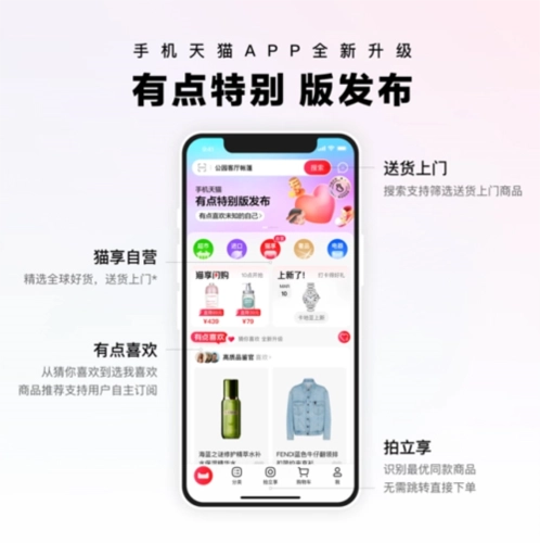 8月4日,手机天猫App迎来全新升级,推出“有点特别版”。新版App首页采用当下备受青睐的极简风格,商品推荐摒弃了以往“猜你喜欢”的模式,用户能够自主订阅兴趣标签。升级后的“拍立享”拍图找货功能,从原本推荐多款商品转变为仅推荐最优的一款。与此同时,搜索功能增添了筛选送货上门商品的选项,全方位围绕用户体验进行升级。