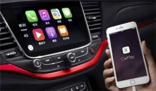 步骤1、若要连接车机版,需先用USB数据线将手机连接到车辆的USB接口。连接成功后,会自动进入CarPlay模式,手机上显示CarPlay图标,车载主机则呈现iOS风格的界面。