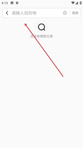 3、该应用搜索页面可输入目的地进行搜索,目前暂无搜索记录,用户可输入新的目的地,点击搜索按钮获取相关路线和地点信息。
