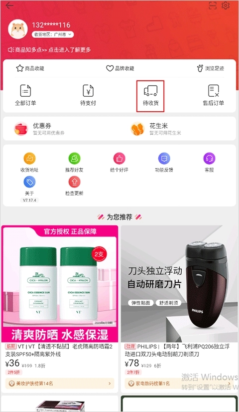 2、在该页面点击“待收货”,选中订单号,进入订单后点击“取消订单”即可。