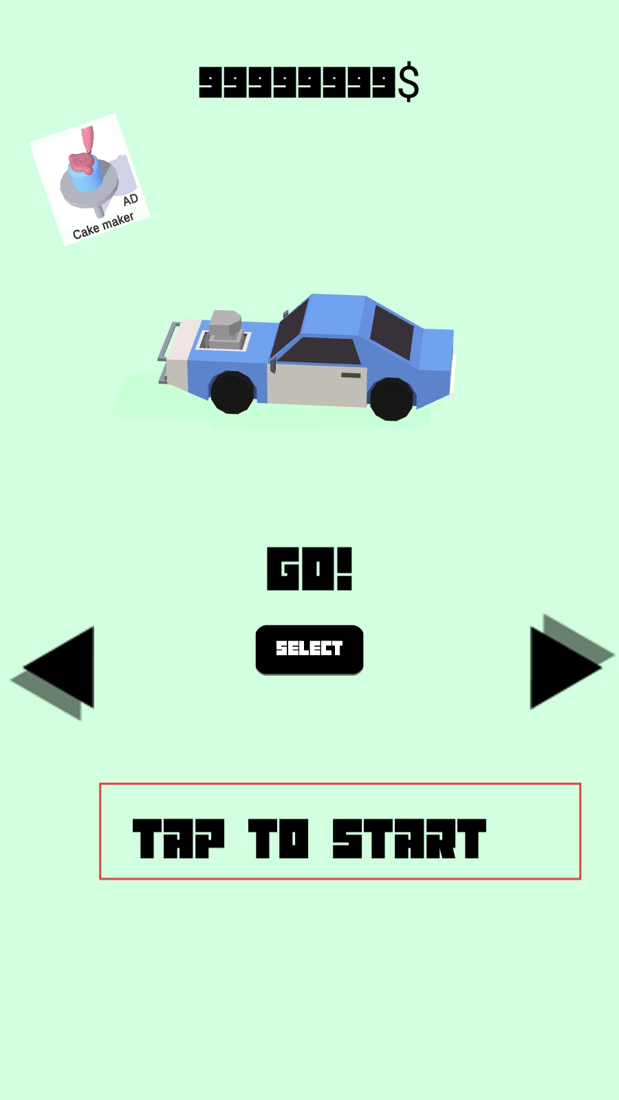 1游戏结束后,玩家回到游戏初始界面,点击“TAP TO START”按钮,即可操控蓝色汽车开启游戏。