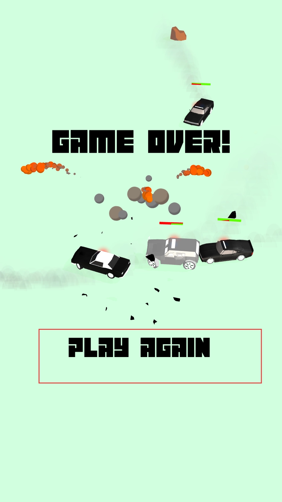 4、若汽车与其他车辆碰撞致使游戏结束,当出现“GAME OVER”提示后,点击“PLAY AGAIN”按钮即可重新开启游戏。