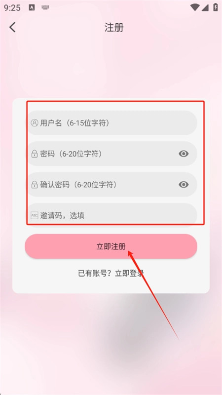 4、最后输入用户名,设置好密码,点击立即注册即可