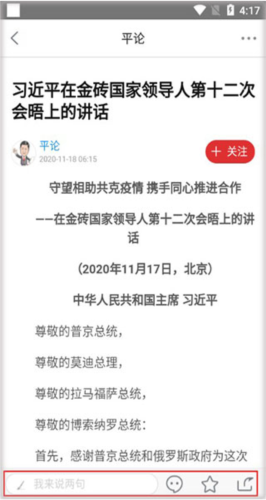 2、在这里可以评论、收藏、转发自己喜欢的新闻;